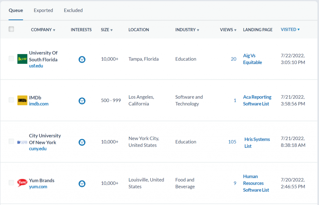 Shortlister Buyer Intent Data will tell you which companies are researching the products you offer, along with if they’ve viewed your organization on Shortlister’s public website and any competitors they’re researching. Savvy business development teams use Intent data to prioritize their outreach to the companies that are most receptive to a conversation.