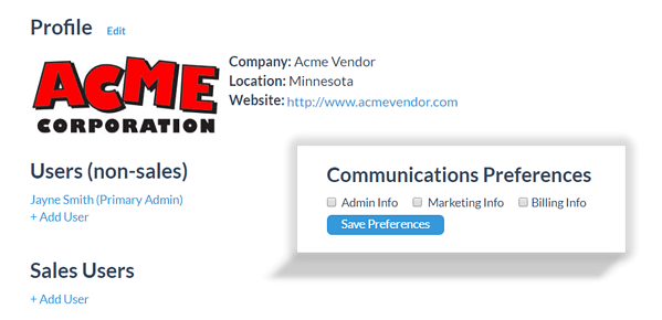 and choose Account. Each account user will have the option to receive Admin Info, Marketing Info, and Billing Info. Select any combination of these options for yourself and your team.