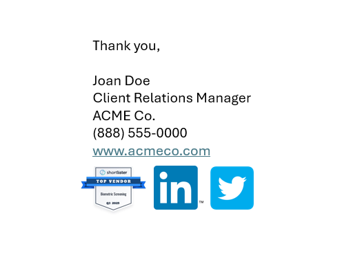 Your Top Vendor Badge comes in several sizes and file formats for different uses, including for your email signature, website, and print.