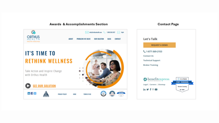 If you have product pages specific to each product you offer, placing the relevant badge on the applicable product pages can differentiate your solution against your competitors and provide additional credibility from an unbiased source.