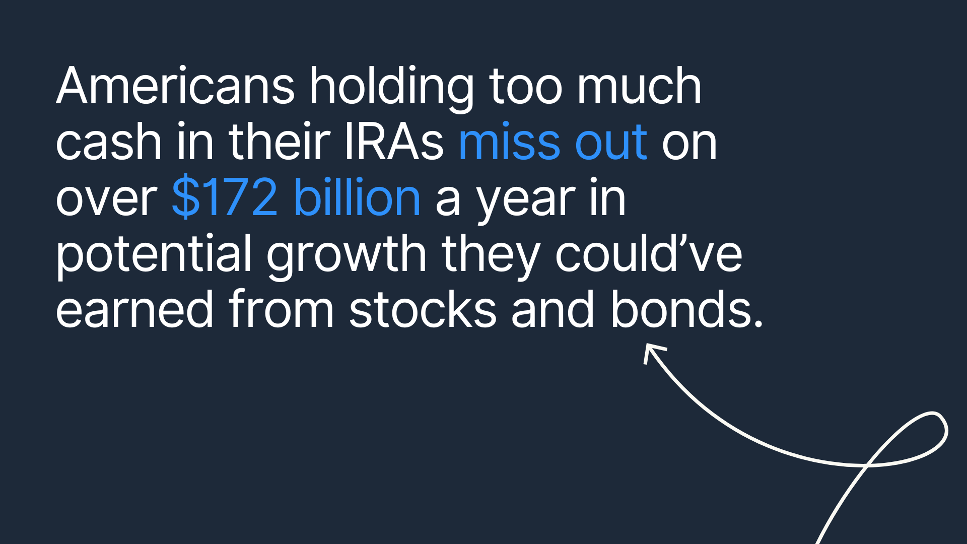 The same study estimated that Americans holding too much cash in their IRAs miss out on over $172 billion a year in potential growth they could’ve earned from stocks and bonds.