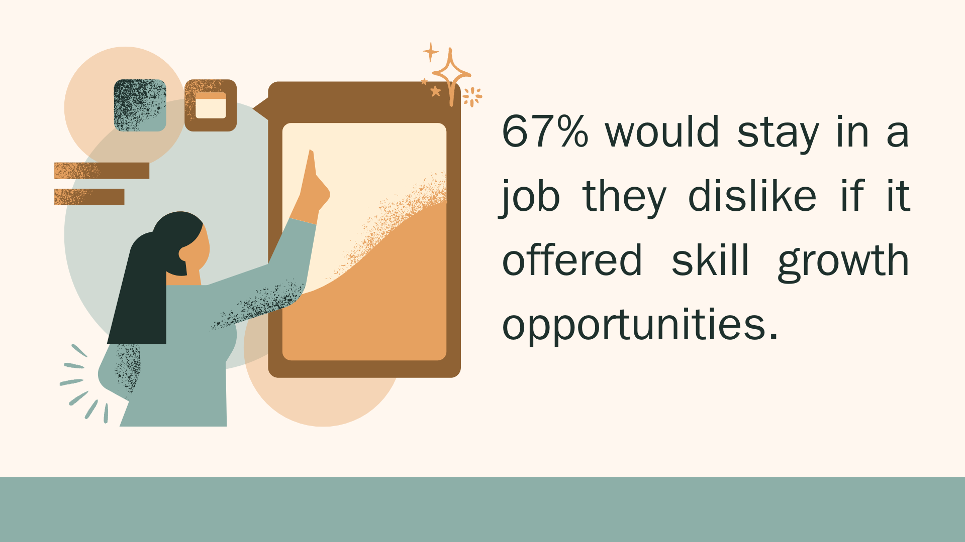 However, the good news is that the workforce is keen to learn new skills if given the opportunity. In fact, 67% would stay in a job they dislike if it offered skill growth opportunities.