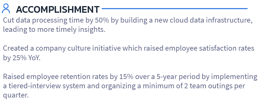 Use a separate section for the accomplishments, and make sure you incorporate them in the job description.