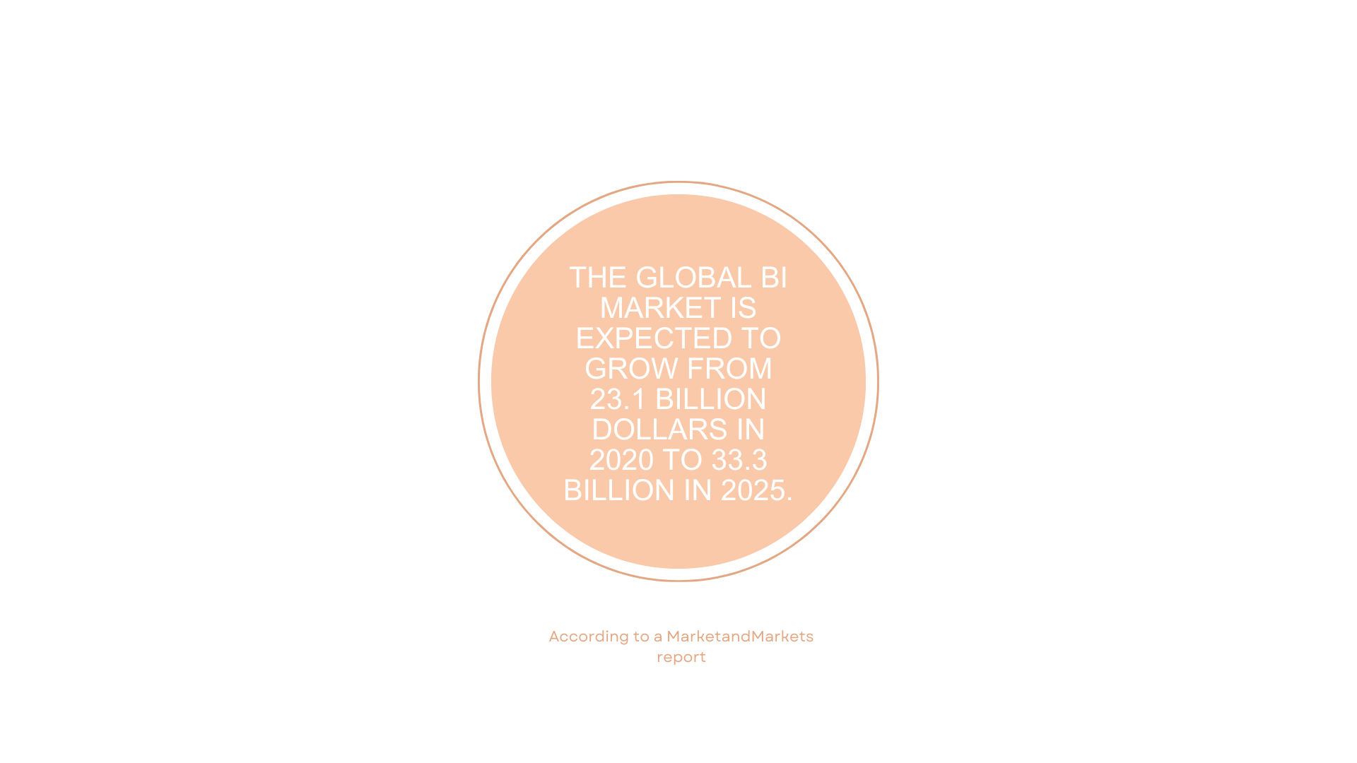 According to a MarketandMarkets report, the global BI market is expected to grow from 23.1 billion dollars in 2020 to 33.3 billion in 2025.