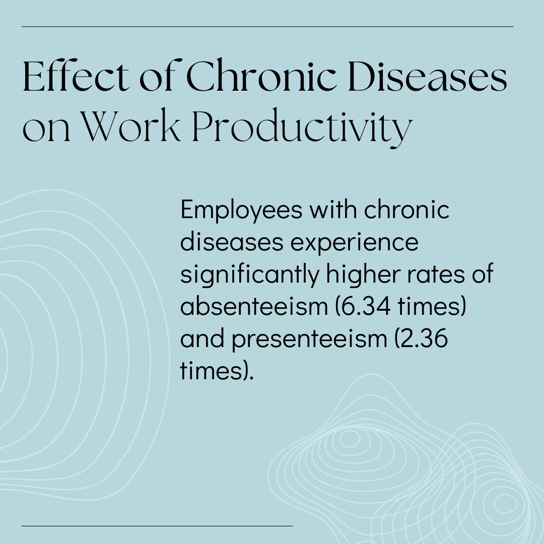 A study titled Effect of Chronic Diseases on Work Productivity: A Propensity Score Analysis found that employees with chronic diseases experience significantly higher rates of absenteeism (6.34 times) and presenteeism (2.36 times) than those without chronic conditions.