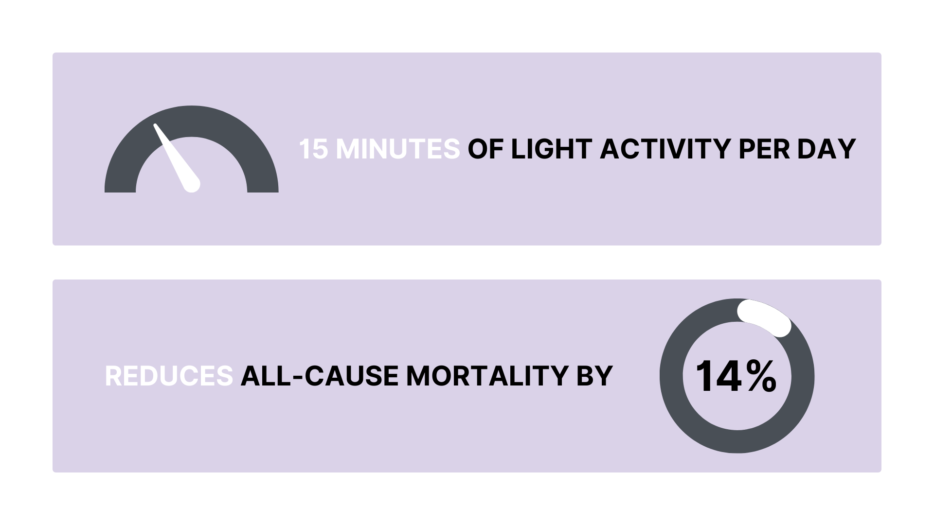 Just 15 minutes of light activity per day reduces all-cause mortality by 14%, according to The Lancet. Sedentary behavior is linked to chronic conditions and musculoskeletal disorders. Movement also improves focus and mood by increasing blood flow to the brain.