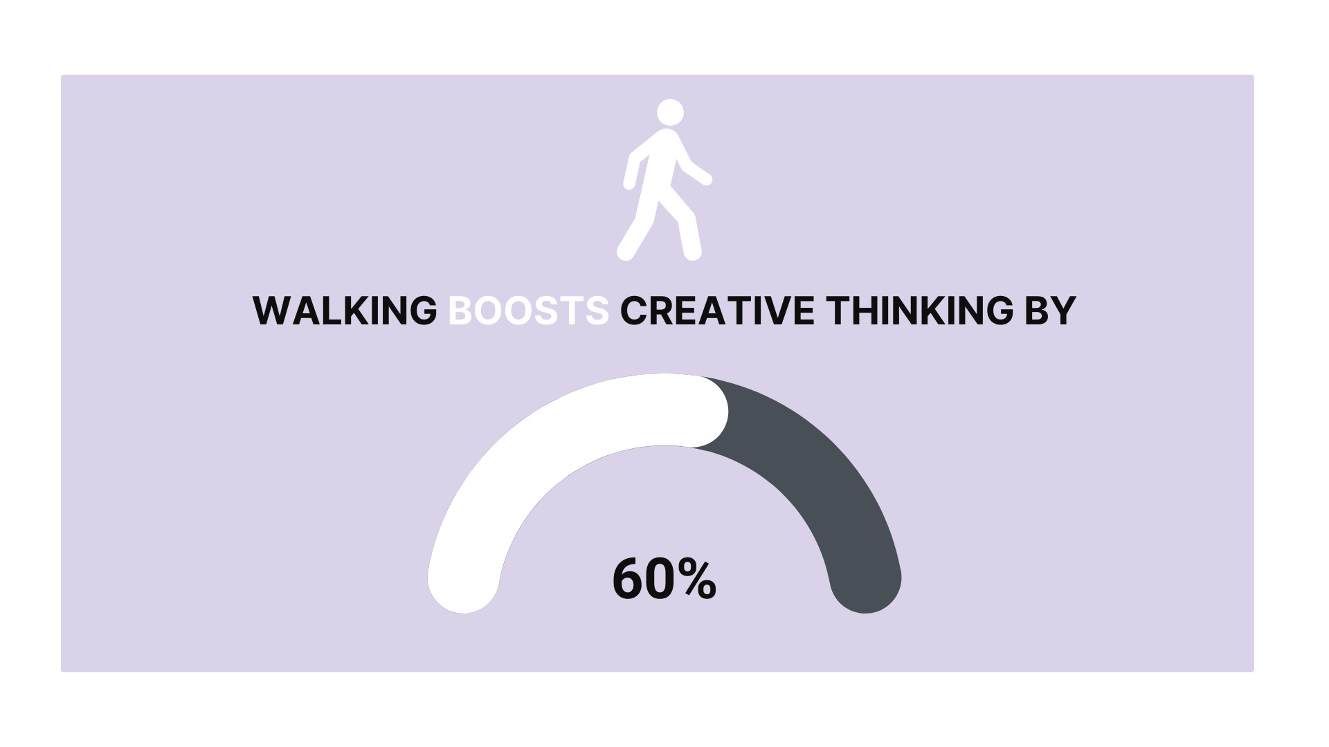 A Stanford study found that walking boosts creative thinking by 60%. It’s also associated with stress reduction and increased information retention.