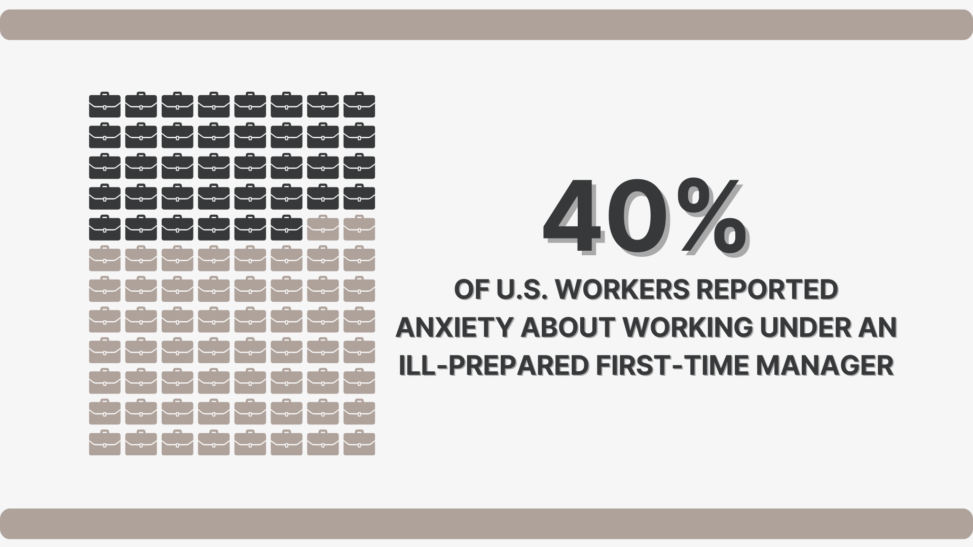 The impact of an unprepared manager can be felt by their teams, too. In one survey, 40% of U.S. workers reported anxiety about working under an ill-prepared first-time manager.
