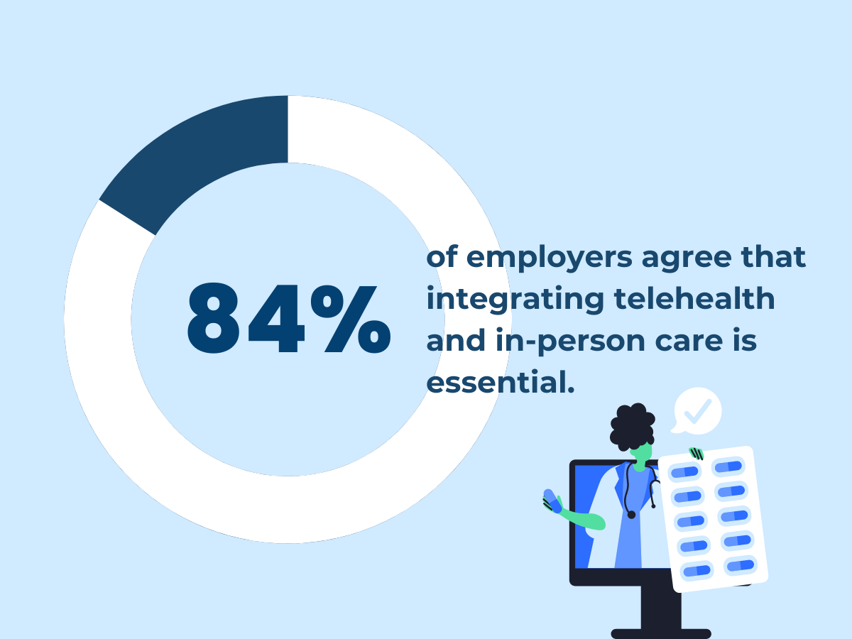 However, 84% of employers agree that integrating telehealth and in-person care is essential.