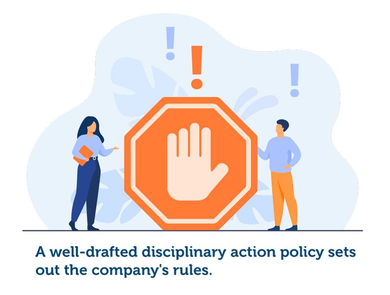 A discipline action policy defines and standardizes response procedures in case of an incident contrary to company policy. A well-drafted policy sets out the company’s rules and the consequences of not following them.