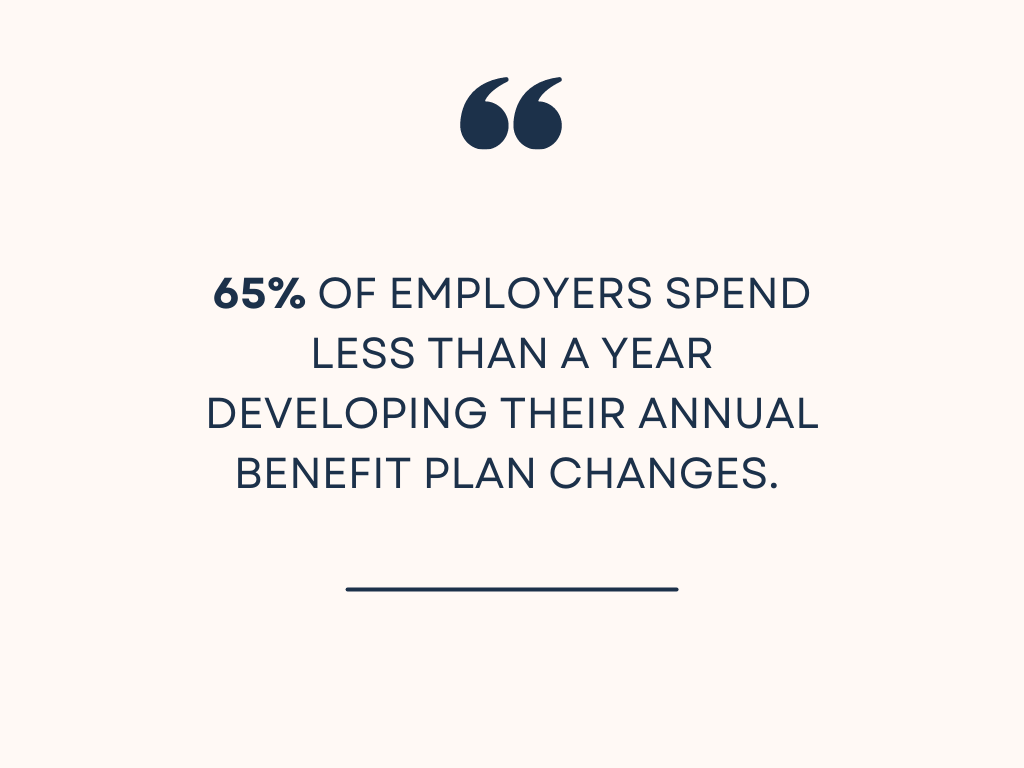 Many businesses miss out on cost-effective strategies for workplace wellness programs due to a lack of planning. A recent study found that 65% of employers spend less than a year developing their annual benefit plan changes.