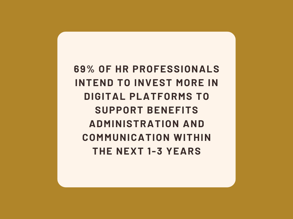 For these reasons, 69% of HR professionals intend to invest more in digital platforms to support benefits administration and communication within the next 1-3 years.