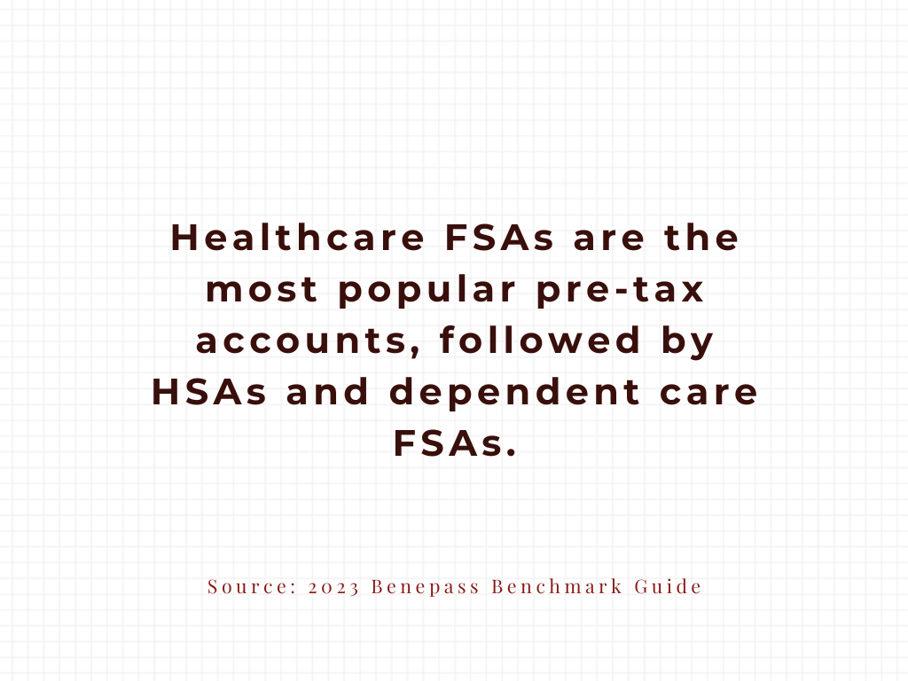 Unsurprisingly, the 2023 Benepass Benchmark Guide reveals that healthcare FSAs are the most popular pre-tax accounts, followed by HSAs and dependent care FSAs.
