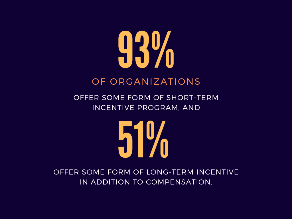 According to statistics, today, 93% of organizations offer some form of short-term incentive program, and 51% offer some form of long-term incentive on top of compensation.