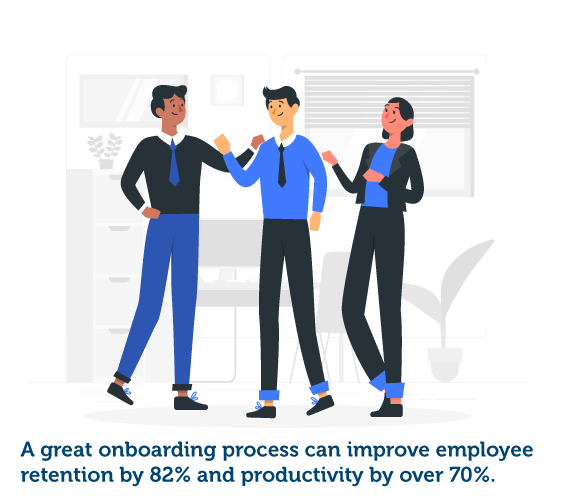According to Shortlister’s recruitment statistics article, a great onboarding process can improve employee retention by 82% and productivity by over 70%.