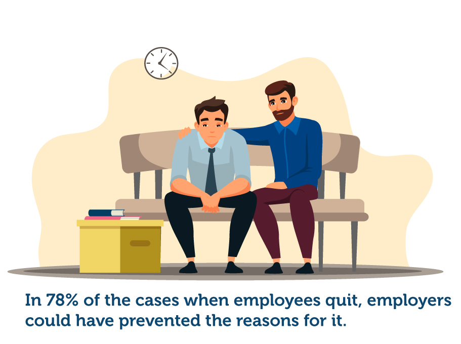 Implementing changes to reduce employee turnover might be challenging, but since 78% of quitting cases could be prevented, it is well worth the time and effort.