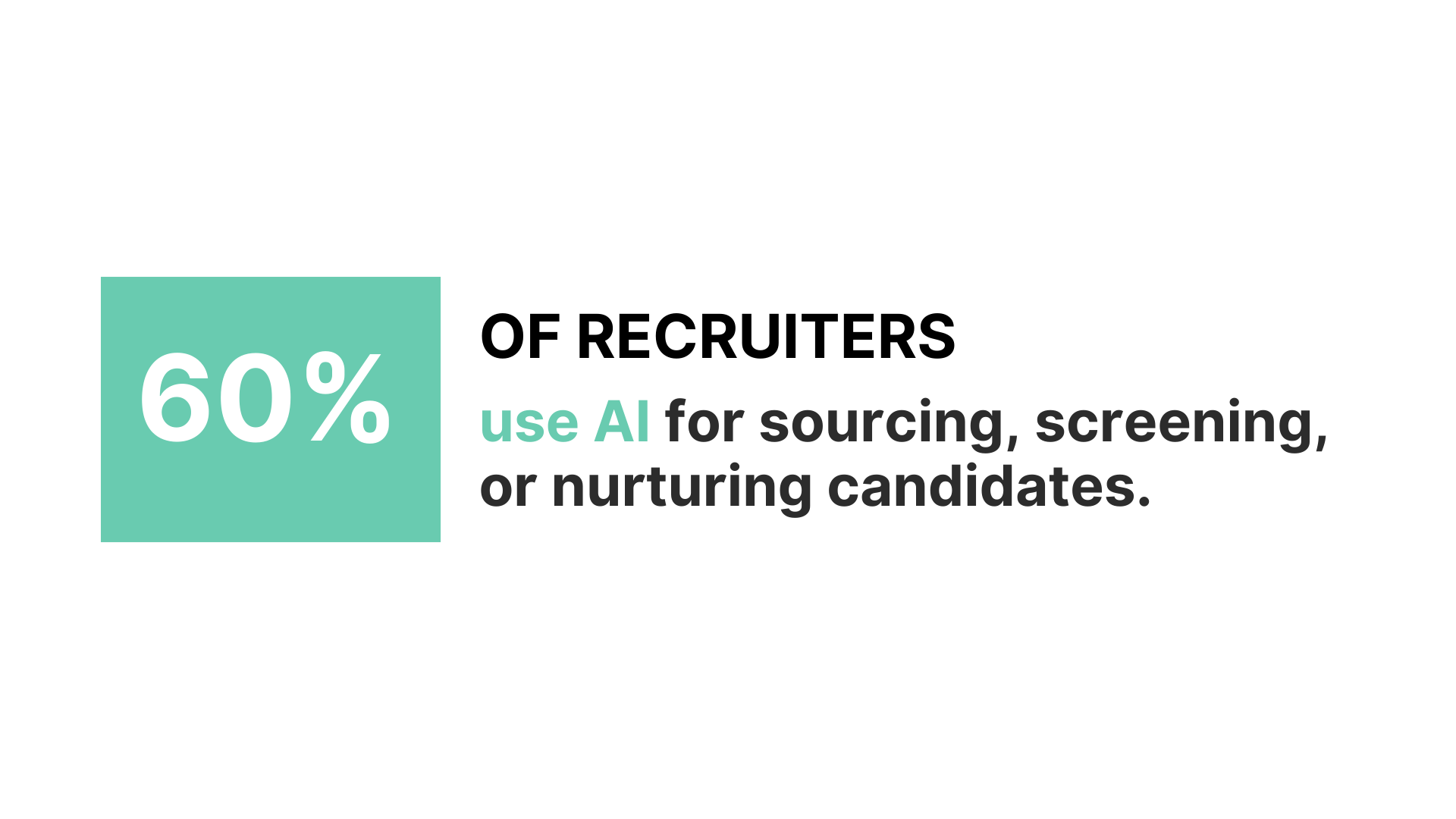 Research by Josh Bersin on how AI is transforming recruiting shows that almost 60% of recruiters use it for sourcing, screening, or nurturing candidates.