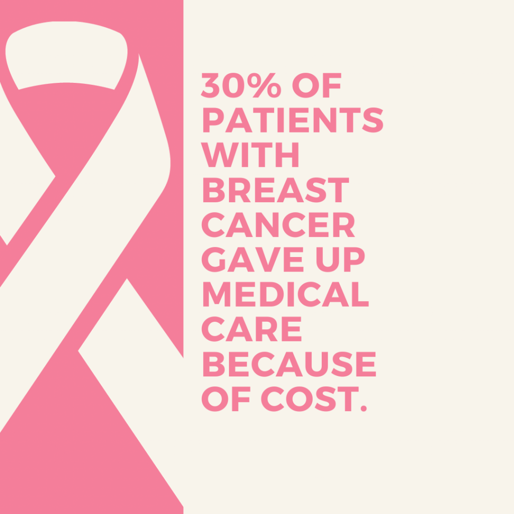 A recent study found that over 30% of patients with breast cancer gave up medical care because of cost, including missing appointments (14.7%), delaying or forgoing treatment (11.9%), and taking less medication than prescribed (6.2%).