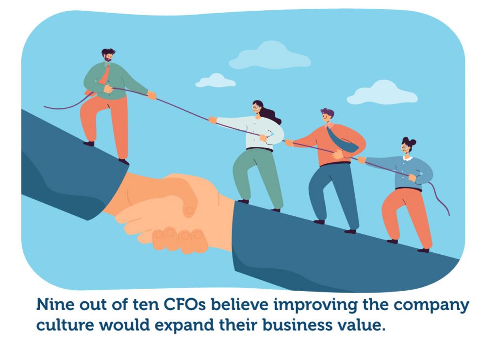 A paper by the National Bureau of Economic Research reveals that nine out of ten CFOs believe improving the company culture would expand their business value.