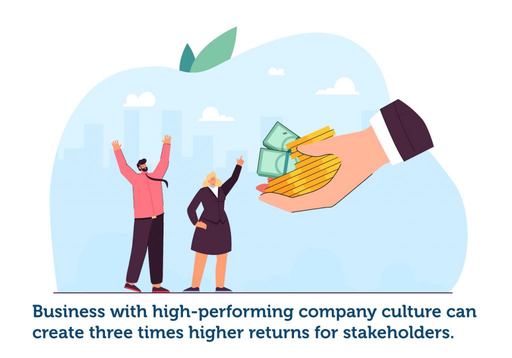 A McKinsey research reveals that a business with high-performing company culture can create three times higher returns for stakeholders.