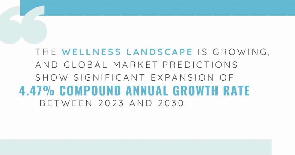 The wellness landscape is growing, and global market predictions show a significant expansion of 4.47% compound annual growth rate between 2023 and 2030.