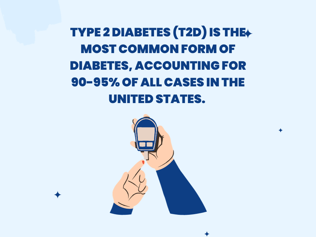 Type 2 diabetes (T2D) is the most common form of diabetes, accounting for 90-95% of all cases in the United States. While type 2 diabetes can develop at any age, it is more common in older adults.