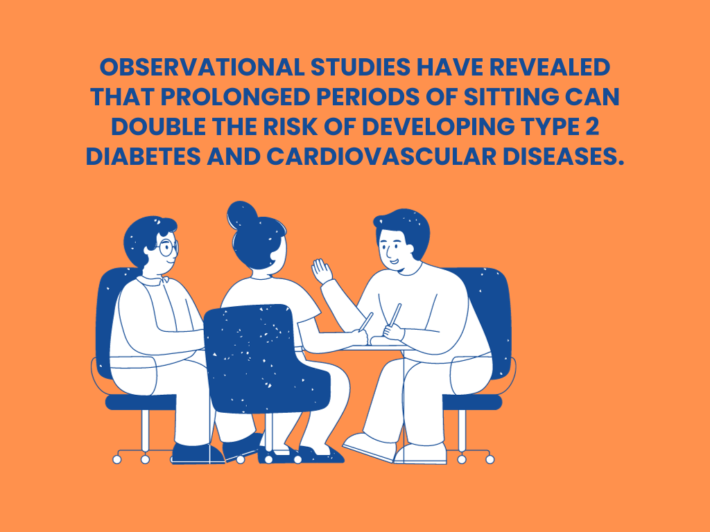 For example, observational studies have revealed that prolonged periods of sitting can double the risk of developing type 2 diabetes and cardiovascular diseases.