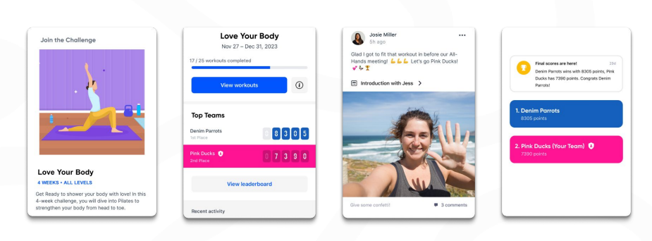 - Personalized digital fitness: AI-powered coaching, on-demand classes, and company fitness challenges.