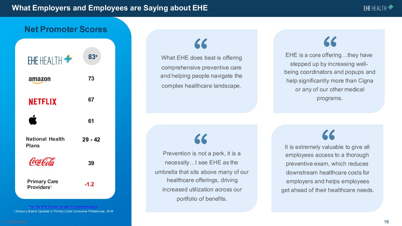 EHE also covers the cost of incentives to boost participation, further removing barriers to care. The result? Industry-leading engagement rates and consistently high patient satisfaction scores (Net Promoter Scores of 83+, far above the much lower averages for primary care providers and national health plans).
