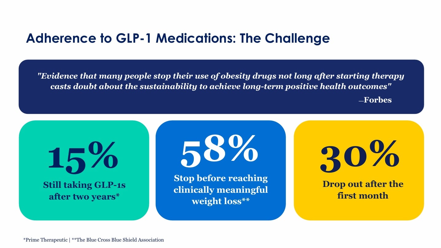 Despite the benefits of GLP-1 therapy, maintaining adherence remains a challenge: