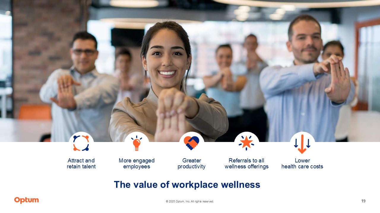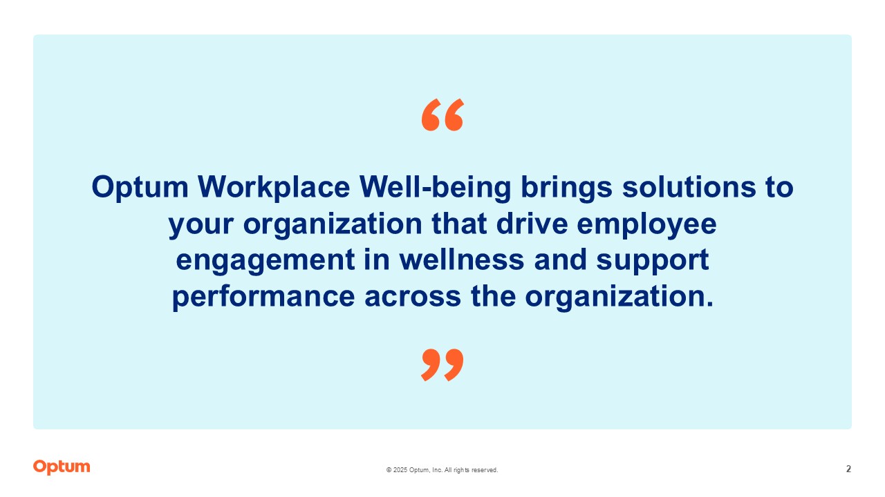 Forward-thinking organizations understand that fostering a culture of health is a strategic necessity that’s key to boosting productivity, increasing engagement and attracting top talent. Optum Workplace Well-being is leading this charge by helping employers implement population health strategies that deliver a measurable impact across the employee experience.