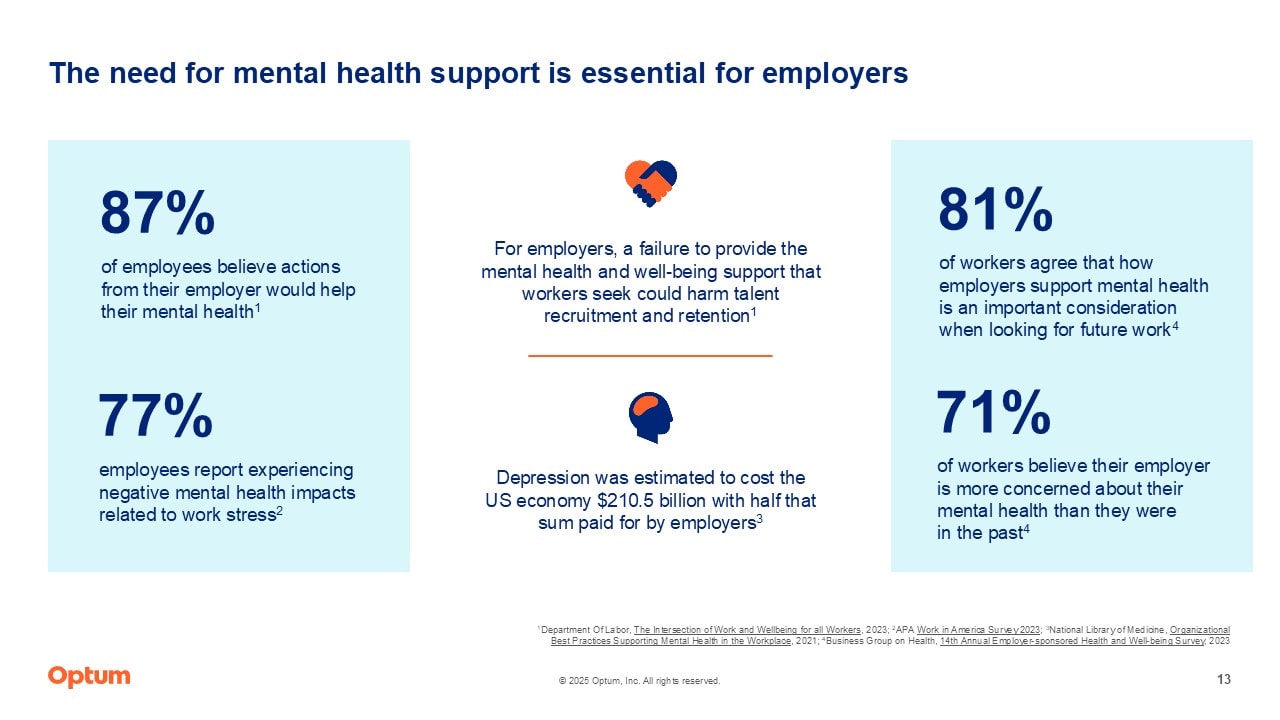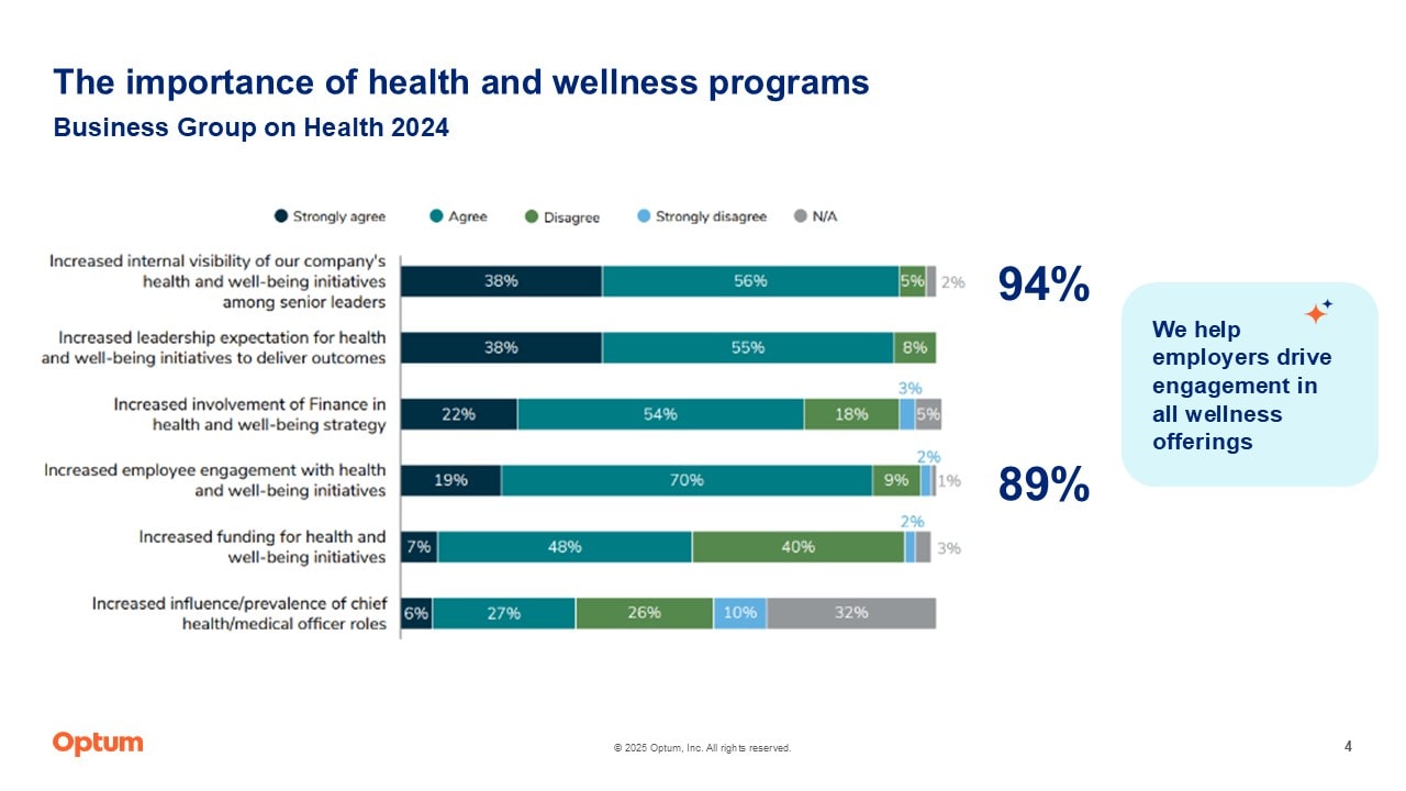 Optum Workplace Well-being addresses this need by supporting organizations in building comprehensive well-being programs with strategies rooted in population health principles. This ensures that every employee, from remote to office staff, receives the support they need to thrive.