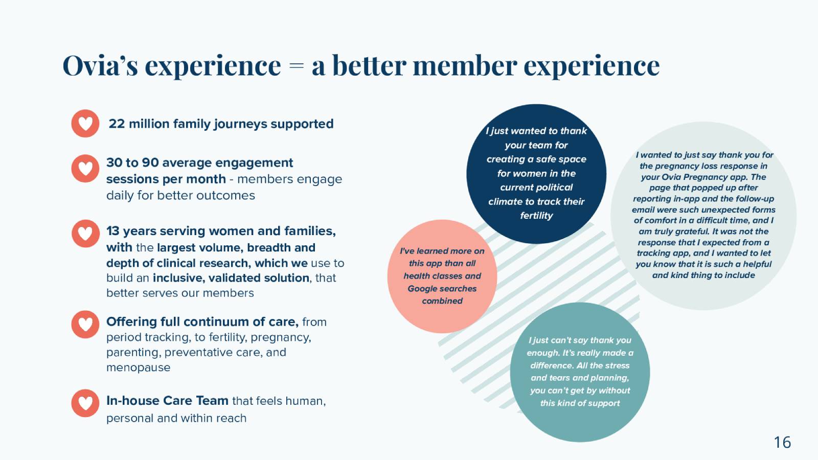 These testimonials are a testament to the human-centric care Ovia delivers. Whether educating one on the importance of preconception health, guiding someone through pregnancy, helping a parent return to work, or supporting a woman through menopause, Ovia is redefining holistic, inclusive care.