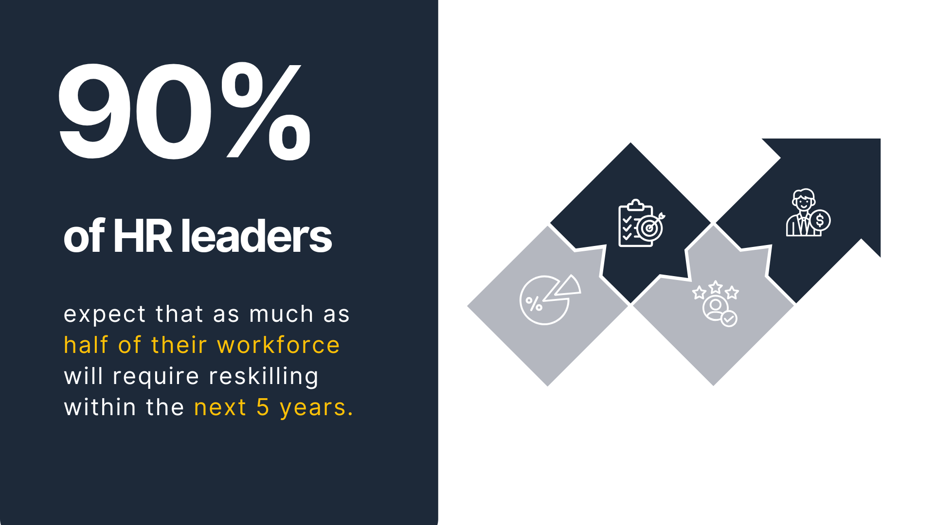 Nearly 90% of HR leaders expect that as much as half of their workforce will require reskilling within the next five years.