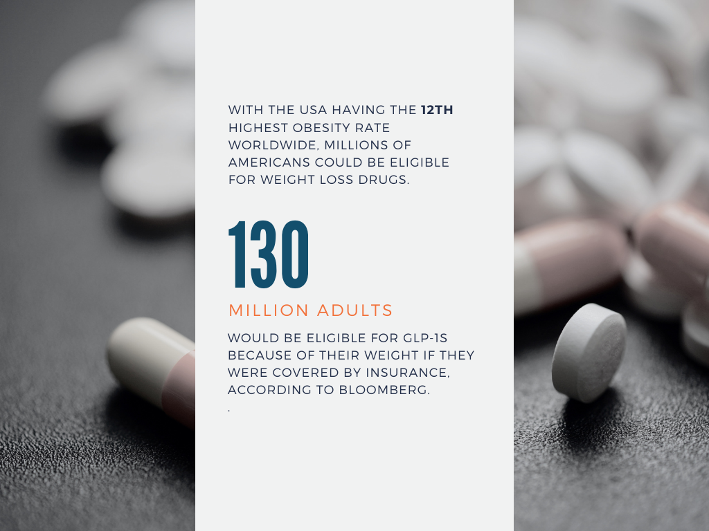 With the USA having the 12th highest obesity rate worldwide, millions of Americans could be eligible for weight loss drugs. According to Bloomberg, nearly 130 million adults would be eligible for GLP-1s because of their weight if they were covered by insurance.