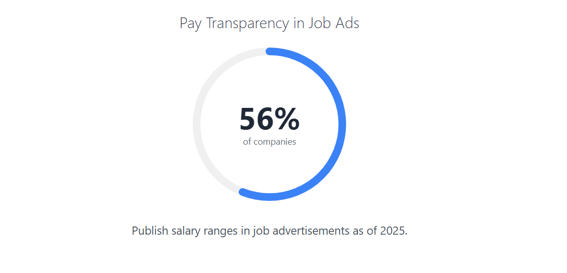 According to a survey by Payscale, 56% of companies are publishing pay ranges in job ads as of this year.