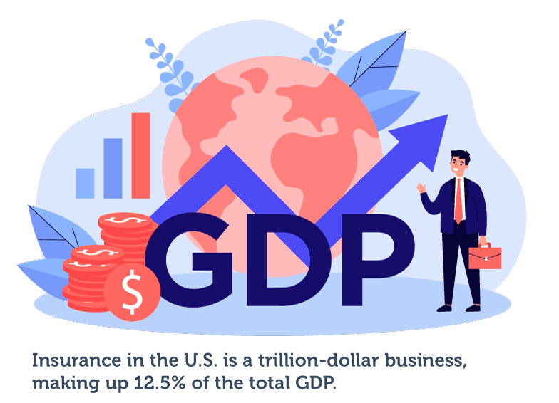 Insurance in the U.S. is a trillion-dollar business, making up 12.5% of the total GDP.