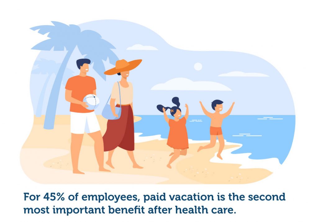 For 45% of employees, paid vacation is the second most important benefit after health care. Research shows that people encouraged to take vacation days are much happier with their jobs. In addition, 78% of leaders report that vacation improves employees’ focus, and 81% state that it relieves burnout.