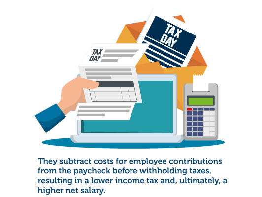 They subtract costs for employee contributions from the paycheck before withholding taxes, resulting in a lower income tax and, ultimately, a higher net salary.