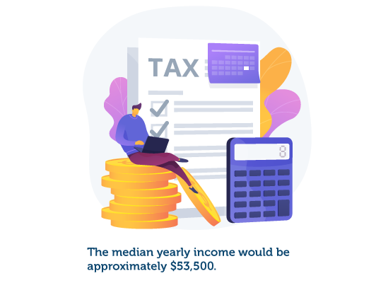 It’s hard to give a precise number of the average annual salary for workers in the U.S. However, if we take some of the latest data from the U.S. Bureau of Labor Statistics, the median yearly income would be approximately $53,500.