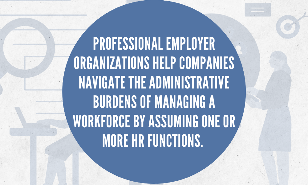 Professional employer organizations help companies navigate the administrative burdens of managing a workforce by assuming one or more HR functions.