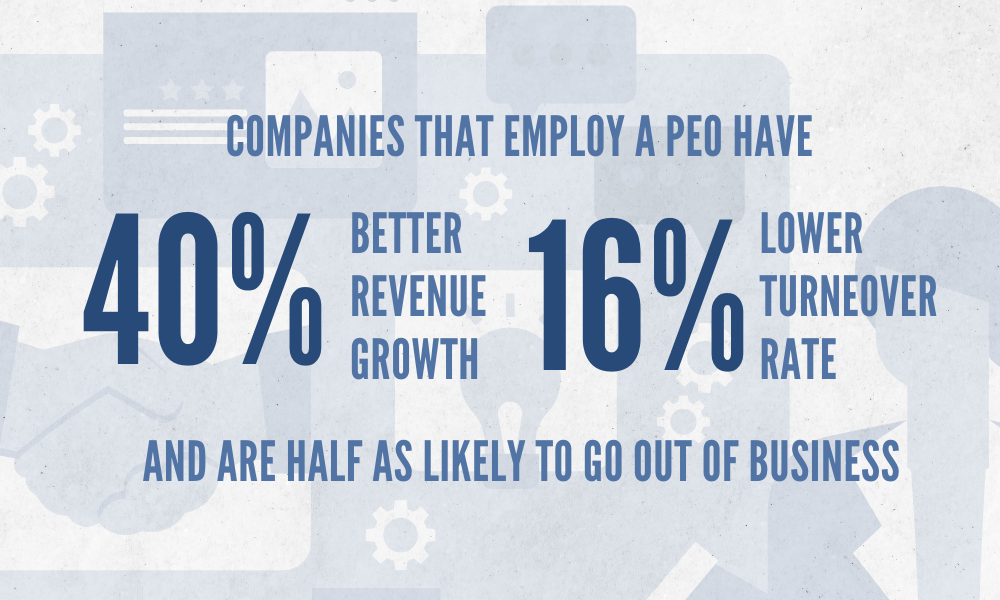 Statistics show that companies that employ professional employer organizations have 40% better revenue growth, up to 16% lower turnover, and are half as likely to go out of business.