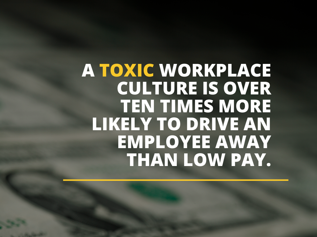 An MIT Sloan Management Review report highlights that a toxic workplace culture is over ten times more likely to drive an employee away than low pay.