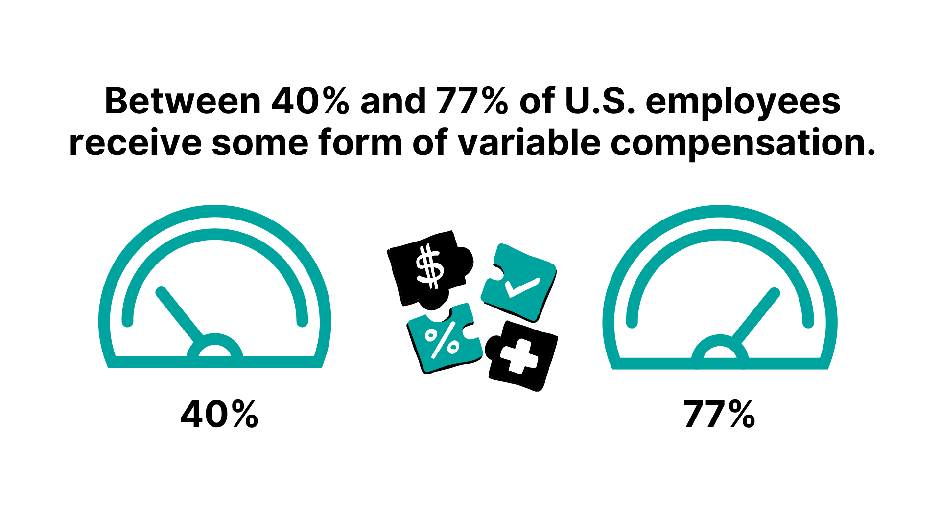 According to Variable Pay and Risk Sharing Between Firms and Workers, approximately 40% of salaried, full-time U.S. employees receive some form of variable compensation, while other sources estimate the figure to be closer to 77%.