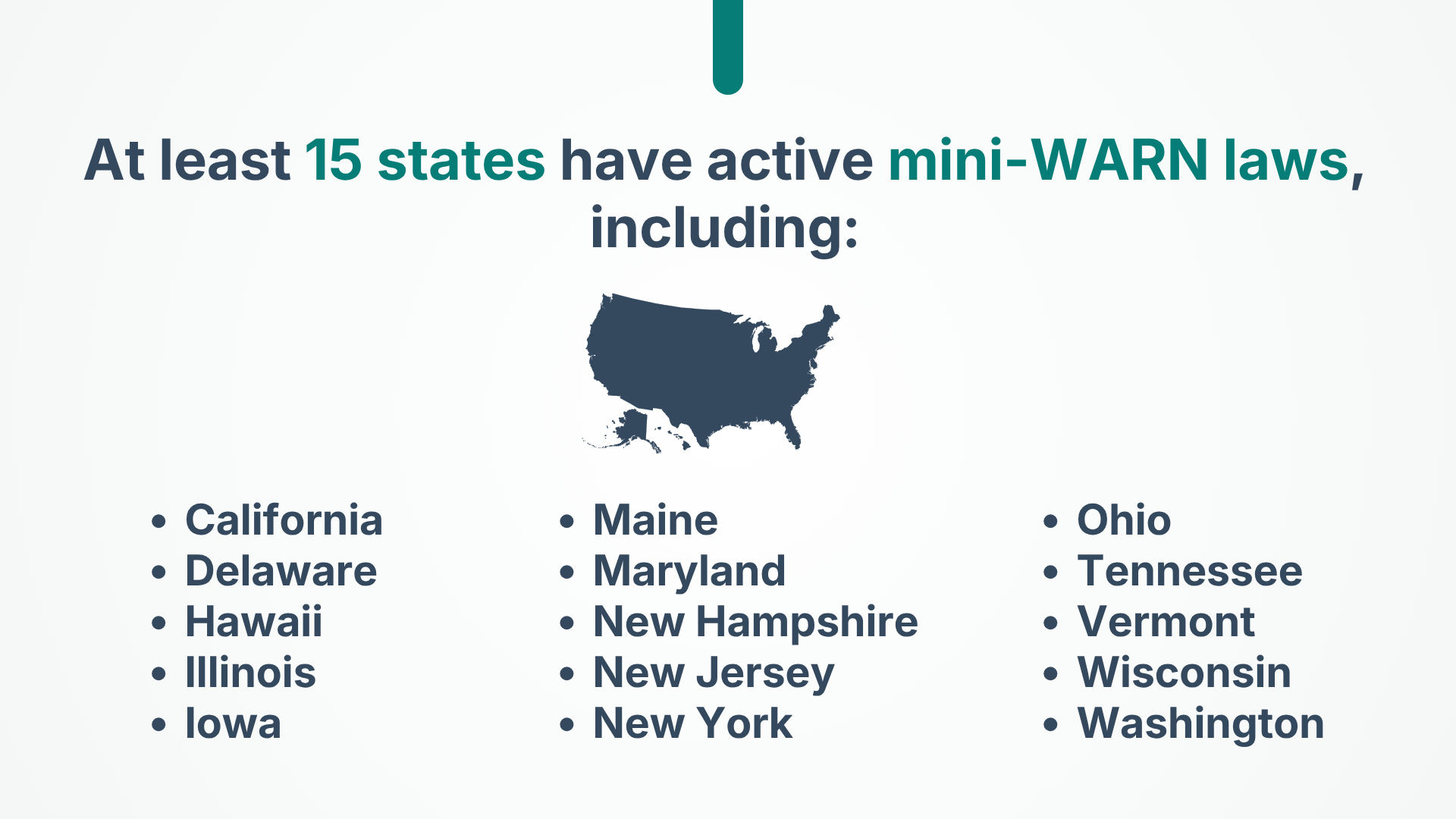 In addition to federal requirements, several states have enacted “mini-WARN” laws with stricter requirements.