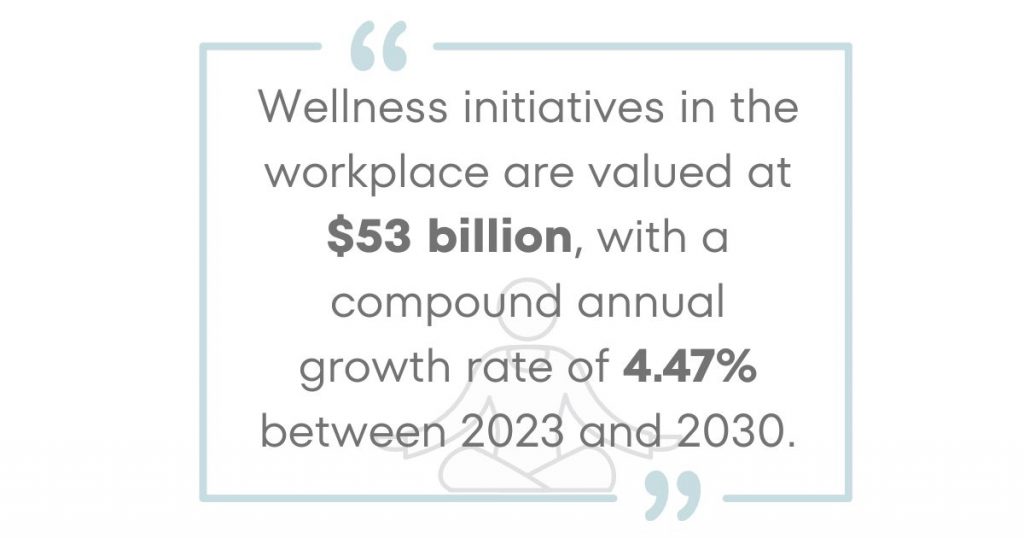 While different studies and surveys may show somewhat different engagement, there is a growing trend of wellness initiatives in the workplace. In fact, predictions for the global market size, valued at $53 billion, show an expansion with a compound annual growth rate (CAGR) of 4.47% between 2023 and 2030.