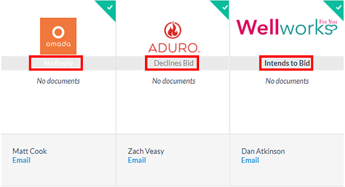 1. The final update we made has to do with vendors participating in your searches. Prior to the update, there were 3 status updates that you were able to see once you clicked into a search (No Reply, Declines Bid, and Intends to Bid):