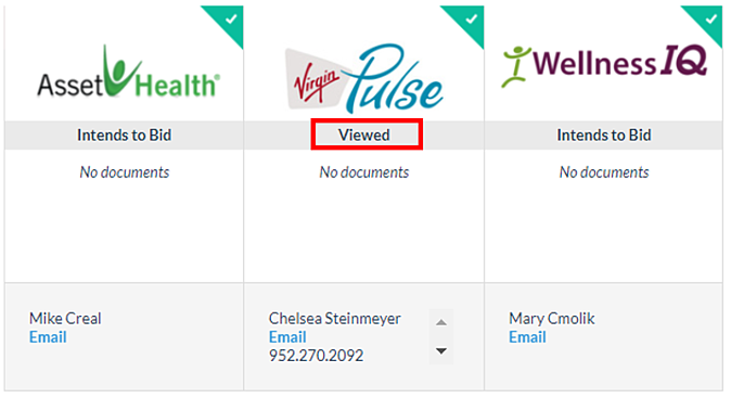 2. With the new update, you are now able to see when the vendor has “Viewed” the opportunity. What this means is that a vendor logged into the system, opened the opportunity and viewed the information, but did not select their intent to bid. Here’s an example of what that looks like: