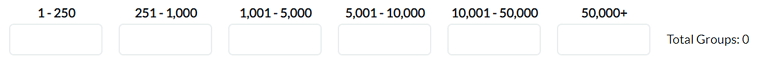 Client Size Breakdown: Enter the number of clients in each group size band for your product(s). Enter the number of clients whose group size is 1-250, the number of clients whose group size is 251-1,000, and so on. Total Groups will automatically update accordingly.